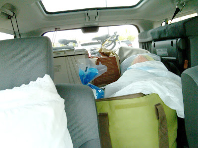 We agonized for months on whether to take the dog but now, seeing the car loaded and sagging, I have to wonder: where did I think we'd stash a 70-pound samoyed mix?